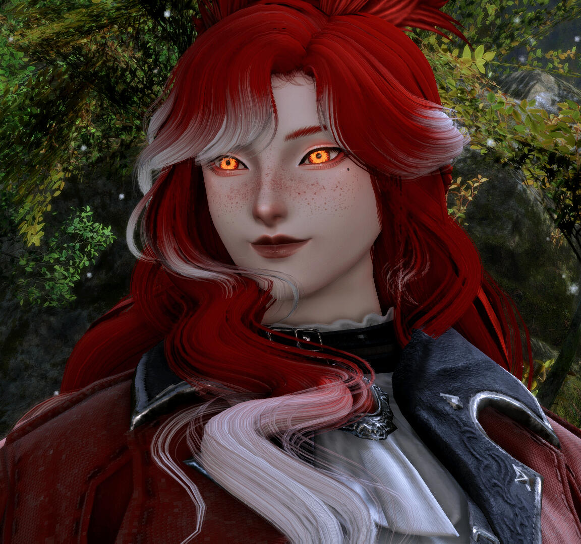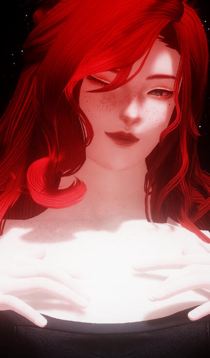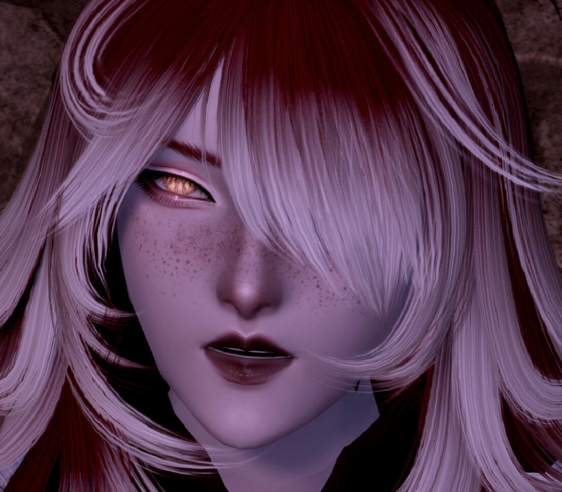 notable features. freckles not just peppered all over his cheeks, but his body. his skin and hair are both affected by light corruption. his eyes reflect the fire within that valigarmanda passed to him after its death. job. dancer, red mage + astrologian.