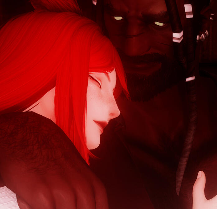 | though their relationship didn't exactly start off conventional, valerius feels safe in ulric's arms and wants to be by his side constantly. despite them both being intense personalities, they balance each other quite well. they're both excited to start their family together with the birth of their daughter, carmine. |